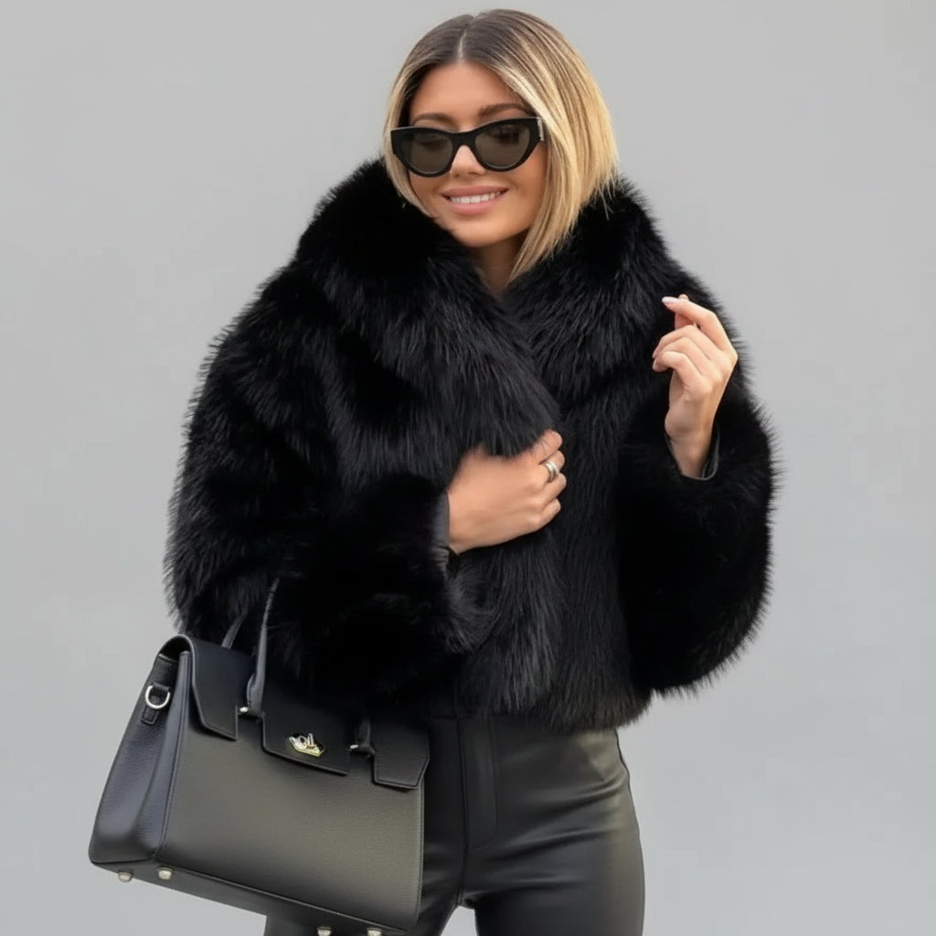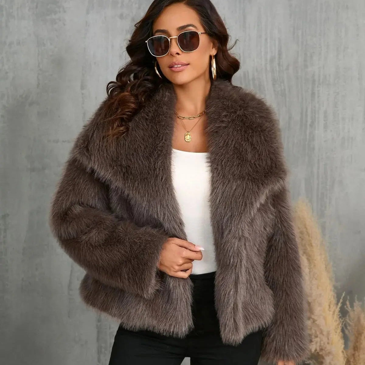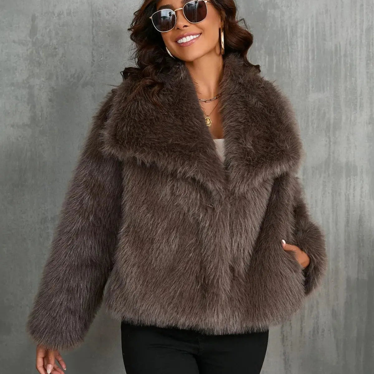 Damska Elegancka Futrzana Kurtka Krotka Oversize
