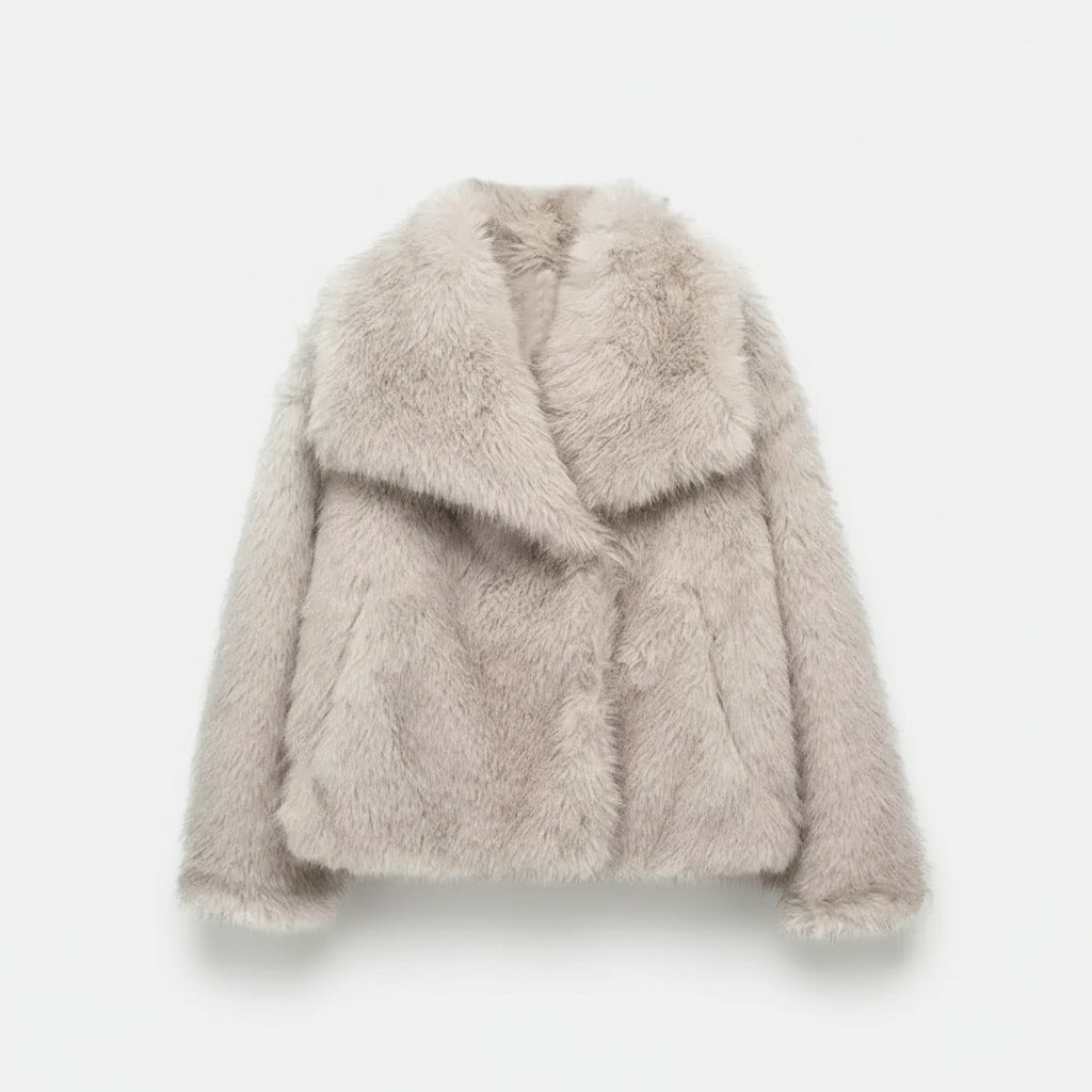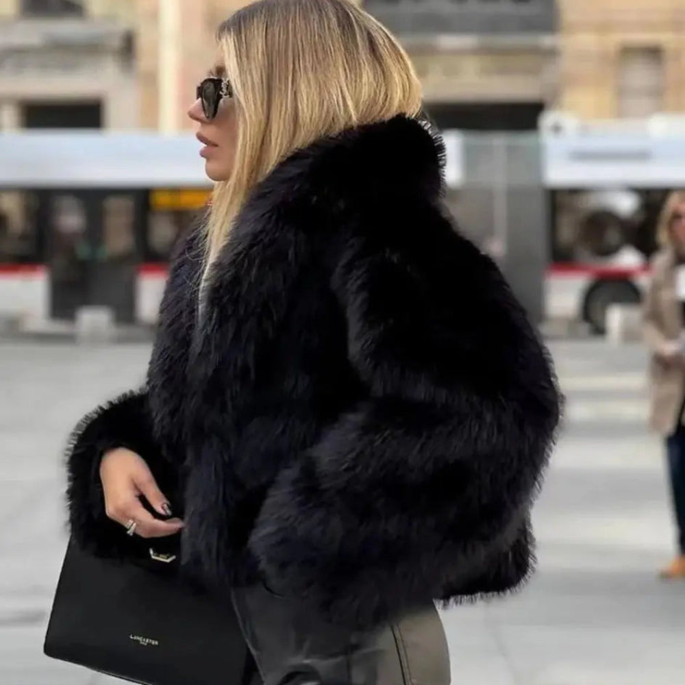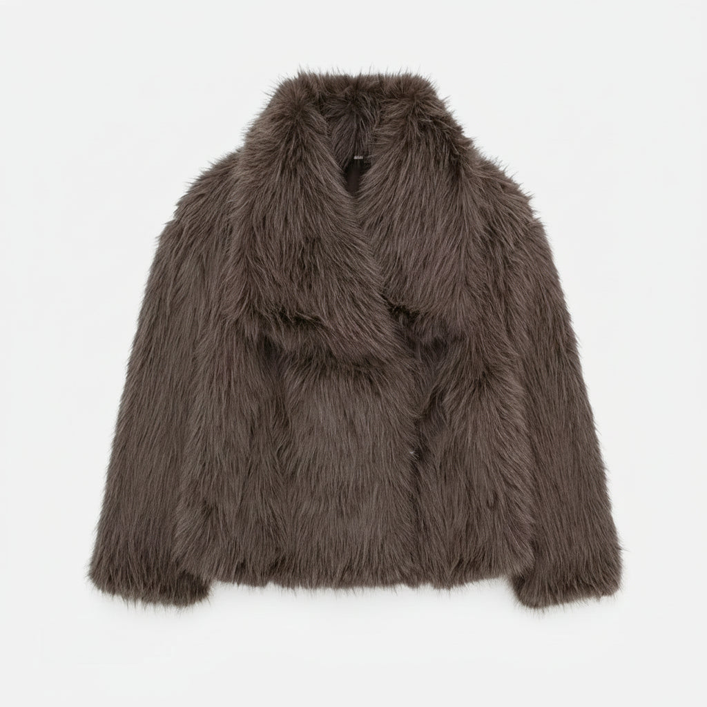 Damska Elegancka Futrzana Kurtka Krotka Oversize