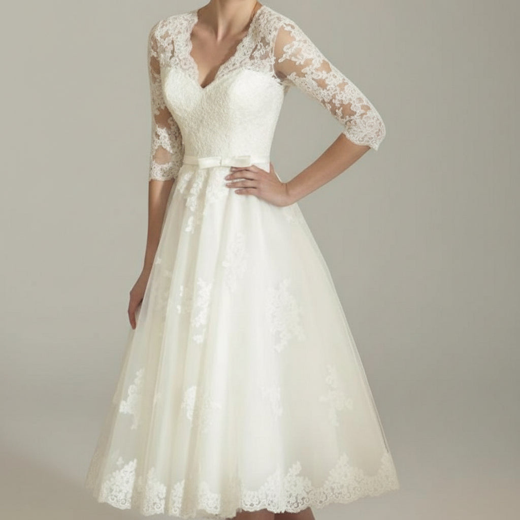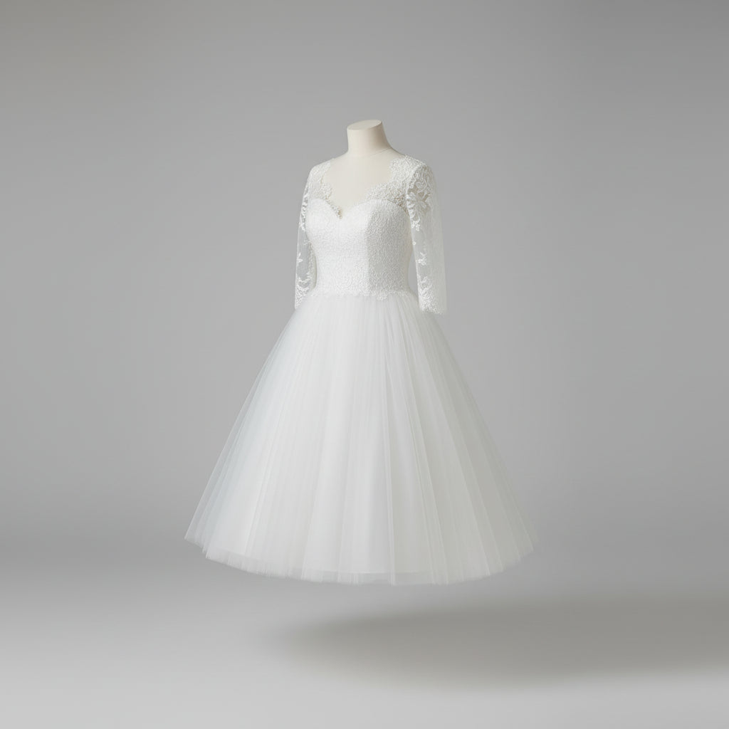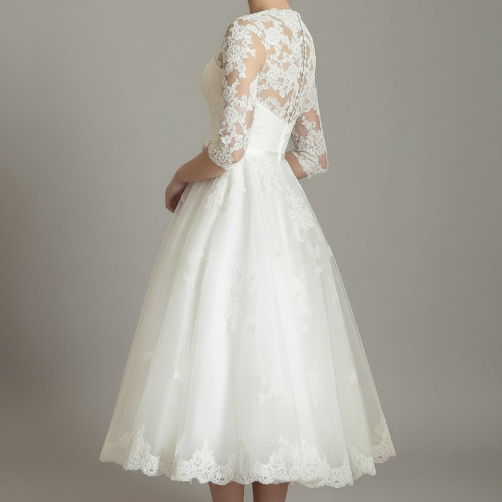 Damska Formalna Koronkowa Suknia Slubna Długi Rękaw Midi