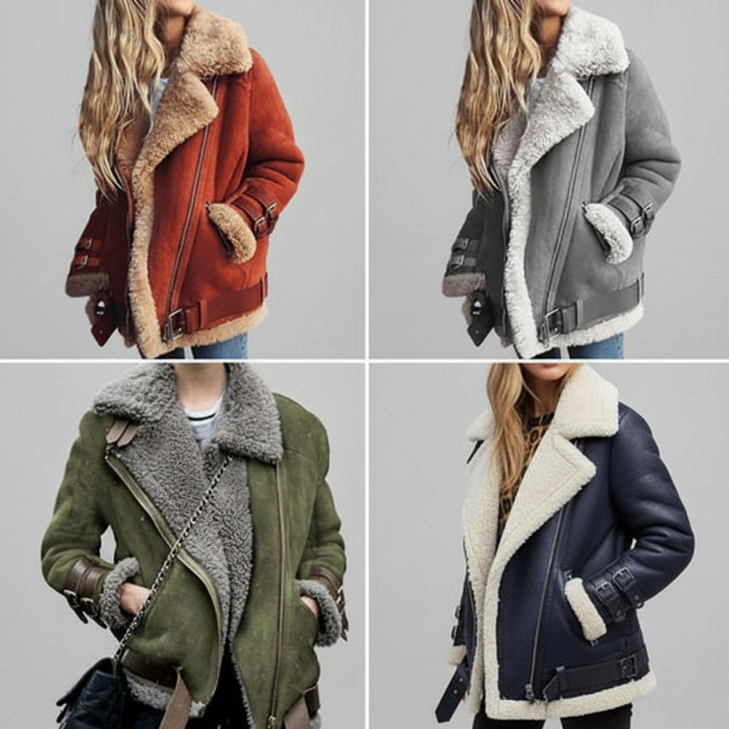 Damska Skórzana Kurtka Zimowa Krótka Oversize