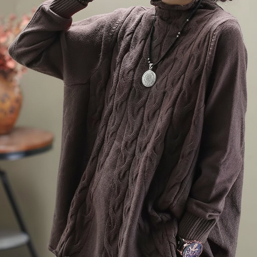 Damski Dzianinowy Sweter Długi Oversize