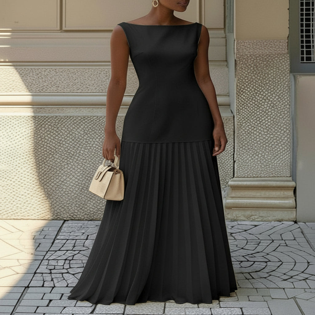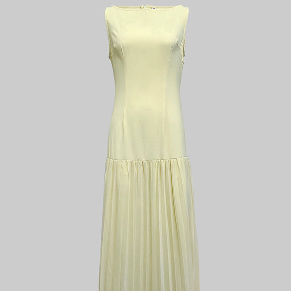 Suknia ślubna elegancka formalna sukienka wieczorowa maxi zachwyca prostą, szykowną linią i efektownym plisowanym dołem. Delikatnie dopasowana góra podkreśla figurę, a lekka tkanina pięknie układa się przy każdym ruchu. To idealny wybór na wesele, uroczyste kolacje i wyjątkowe wydarzenia.