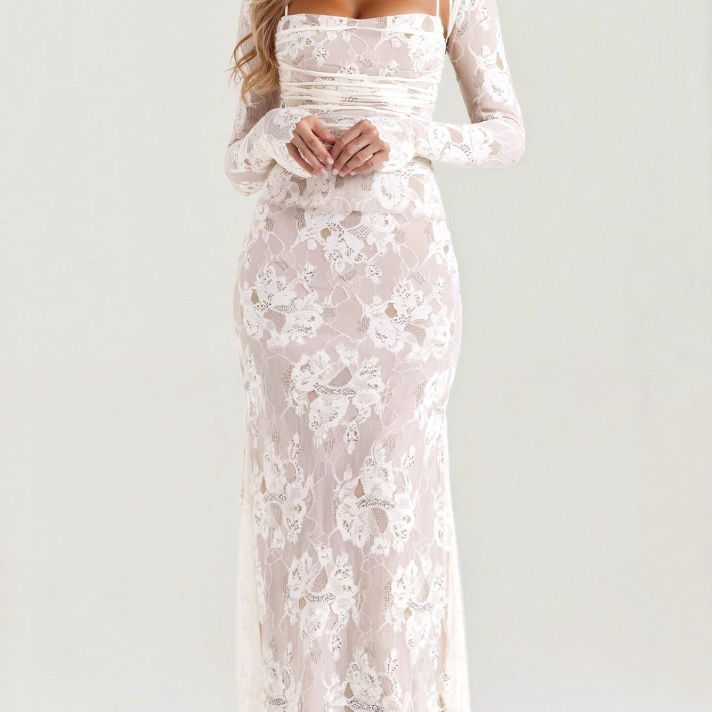 Suknia Ślubna Z Długim Rękawem Koronkowa Sukienka Maxi